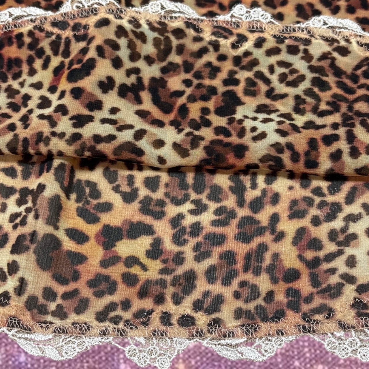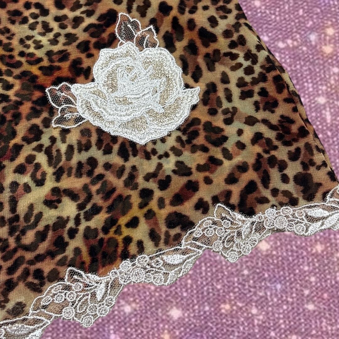 ”サルート ” ローズ刺繍 レーストリム レオパード ヒョウ柄 シアーランジェリー キャミソール