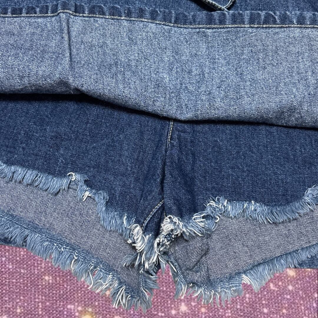 ” トミージーンズ" ヴィンテージライク ウエストリボン ローライズ デニム スカート見えホットパンツ スコート スカンツ