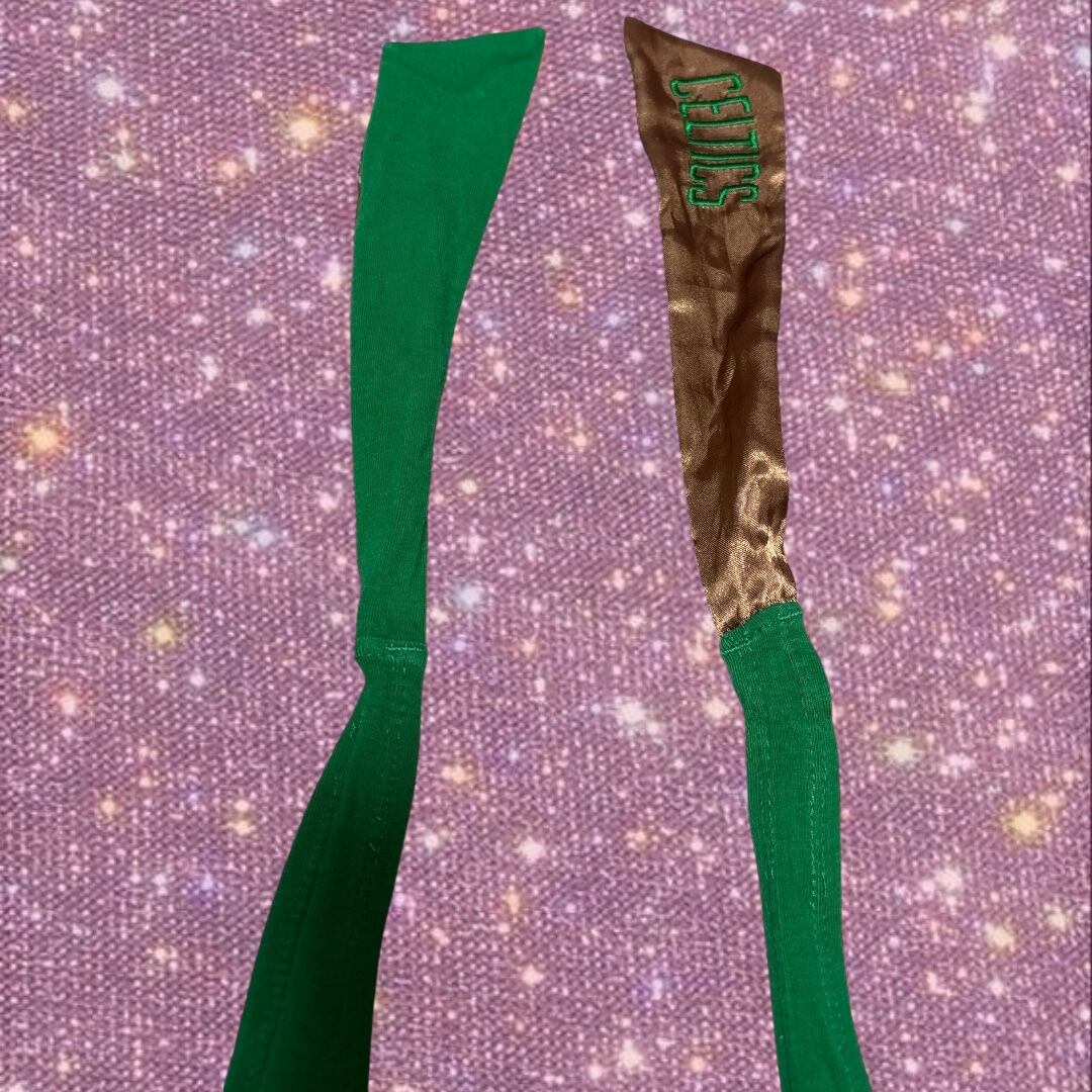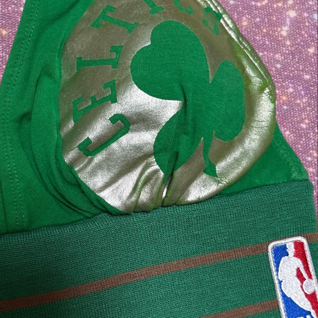 ”ボストン・セルティックス” ワッペン メタリック プリント ラインリブ切り替え クロップド 短丈 ホルターネック ブラトップ