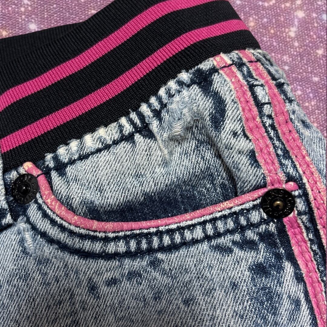 00’s J-Y2K archive "COCO LULU COANDLU" Pink Line Denim Micro mini skirt