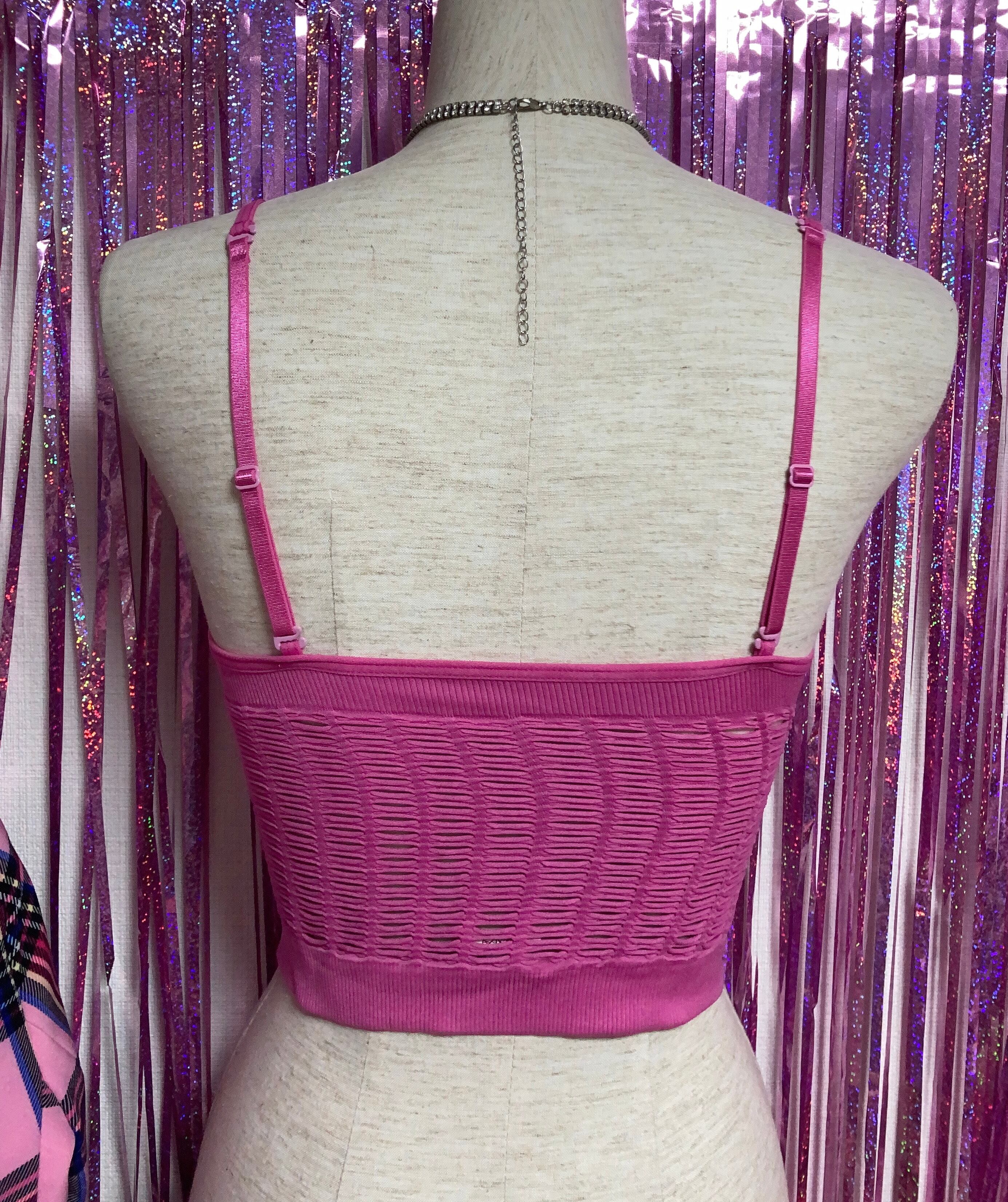 00's y2k pink Style 古着 HUSTLER ハスラー Bimbo style ストレッチメッシュ クロップド キャミソール
