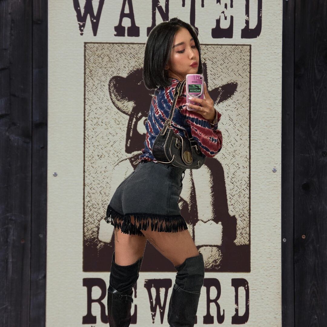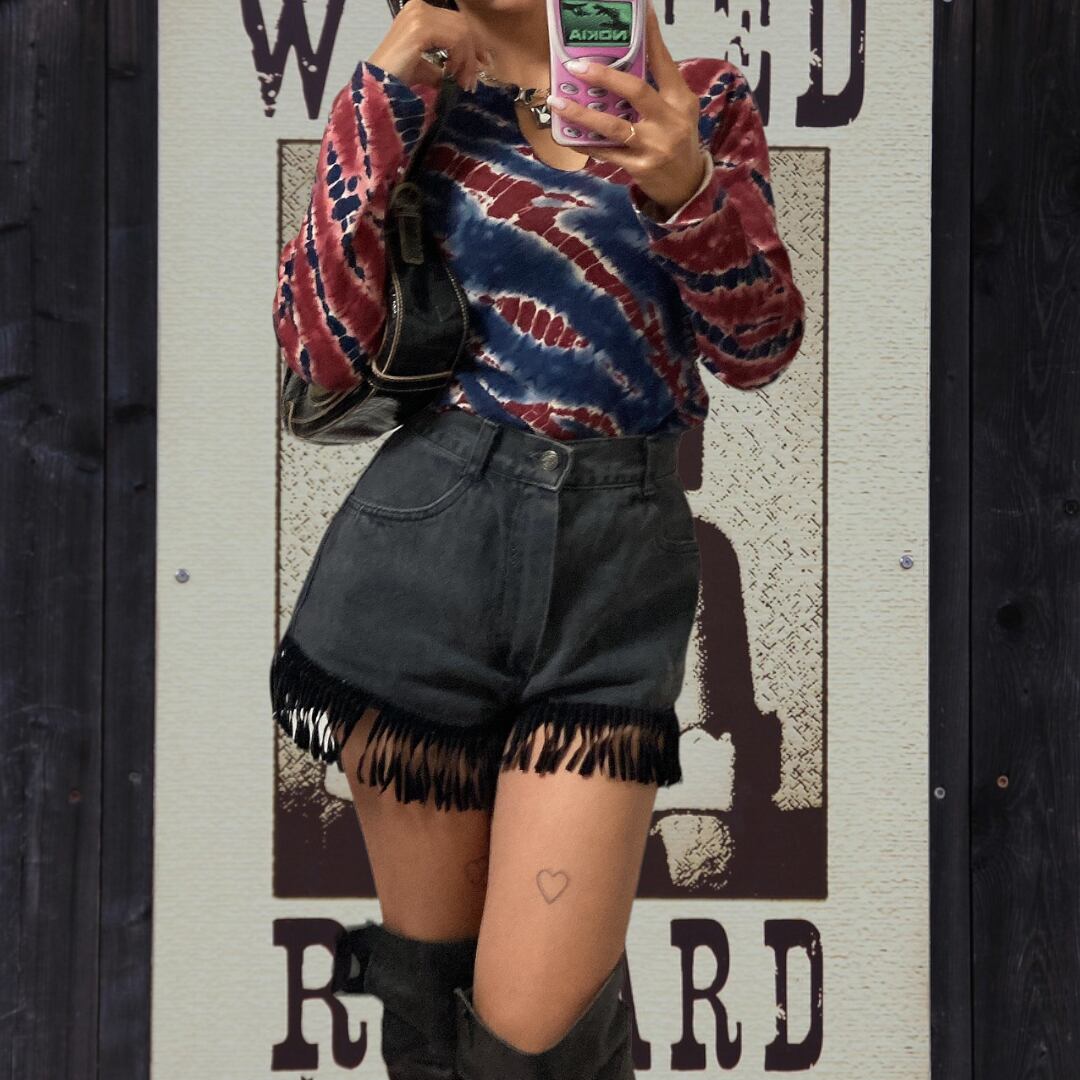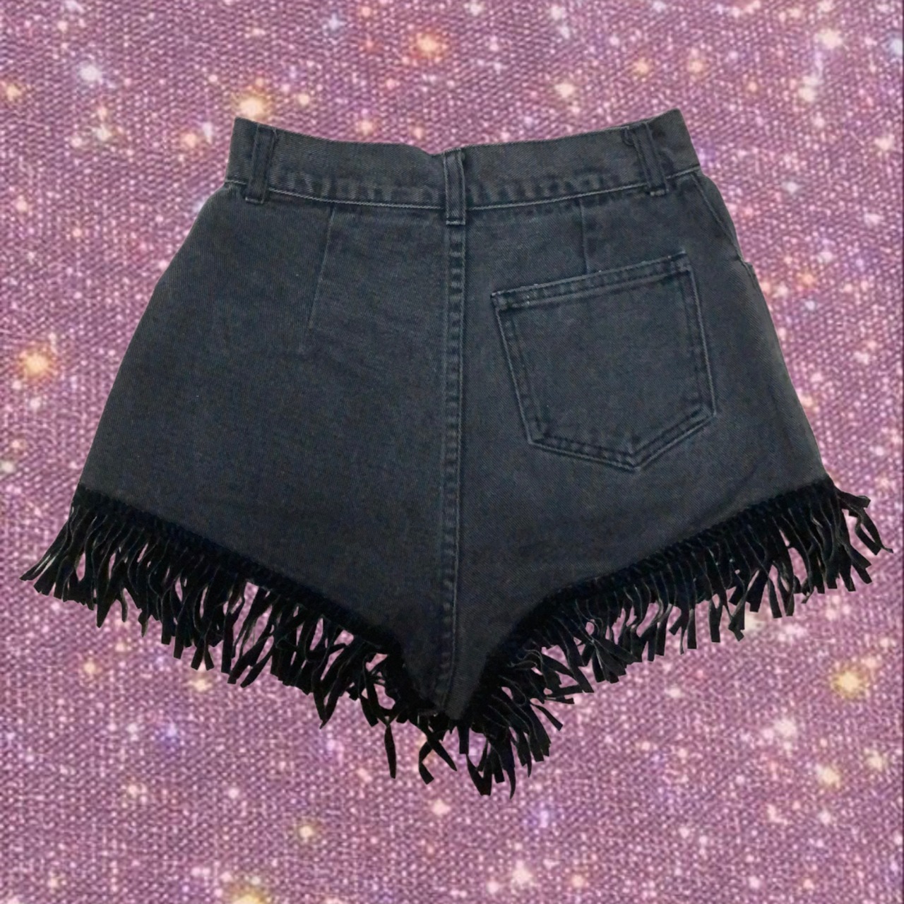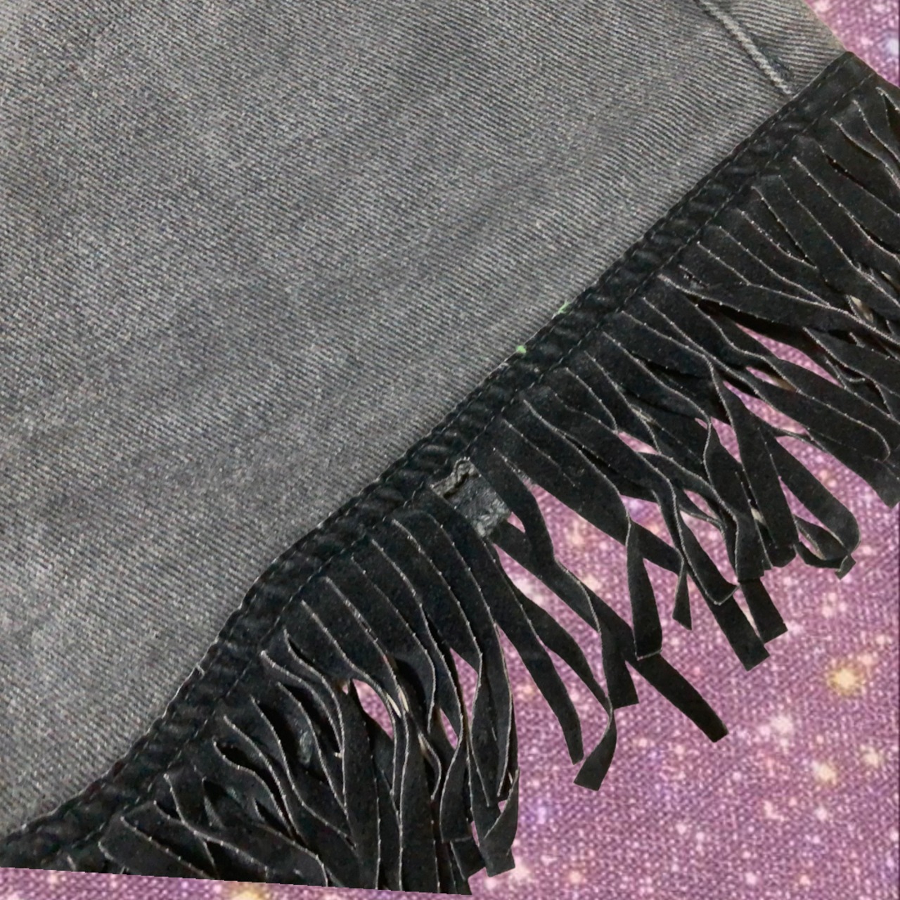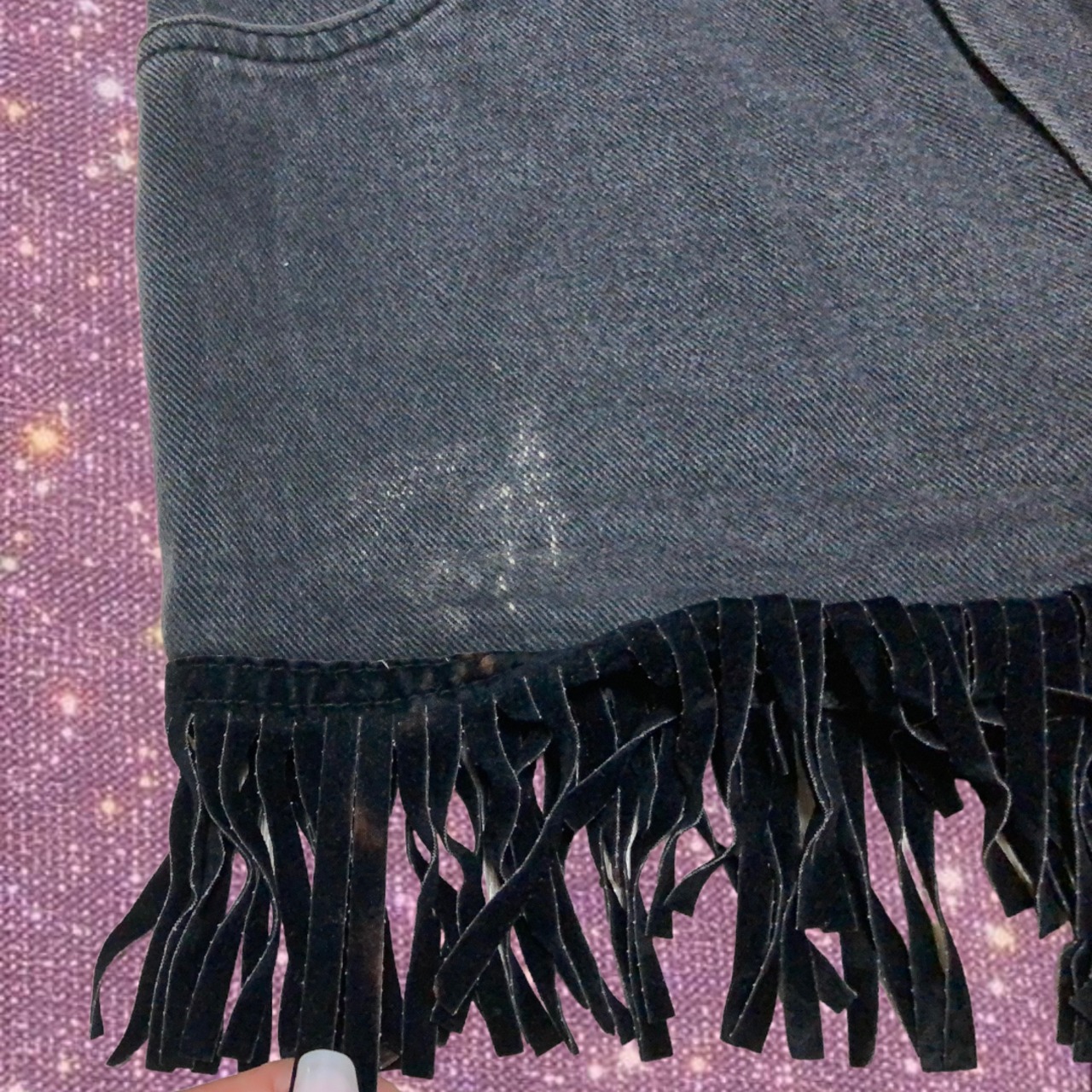 from LA vintage Boho /Western vibes suede leather fringe trim denim short pants