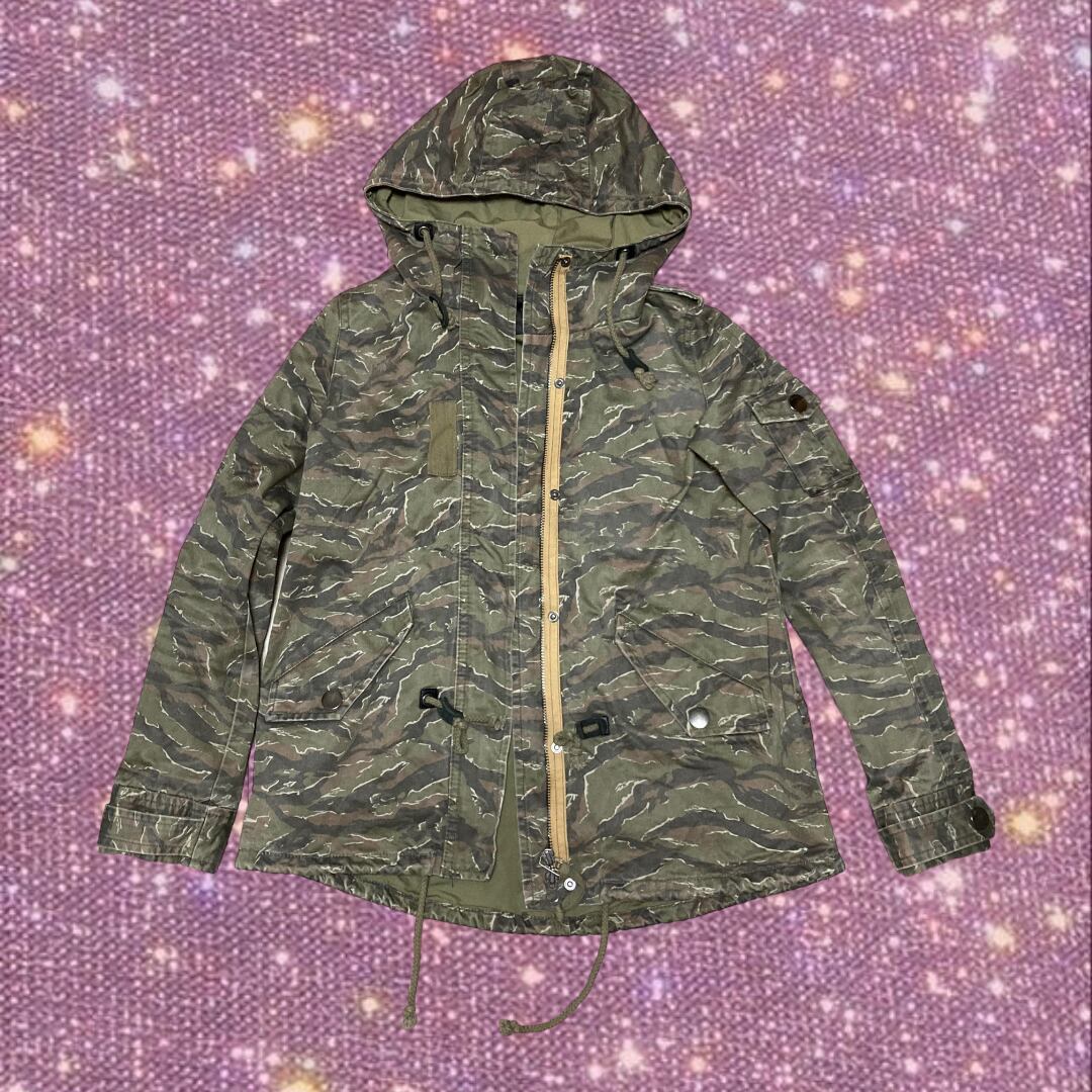 "マウジー" カモフラージュ 迷彩柄 比翼 ミリタリーフードジャケット