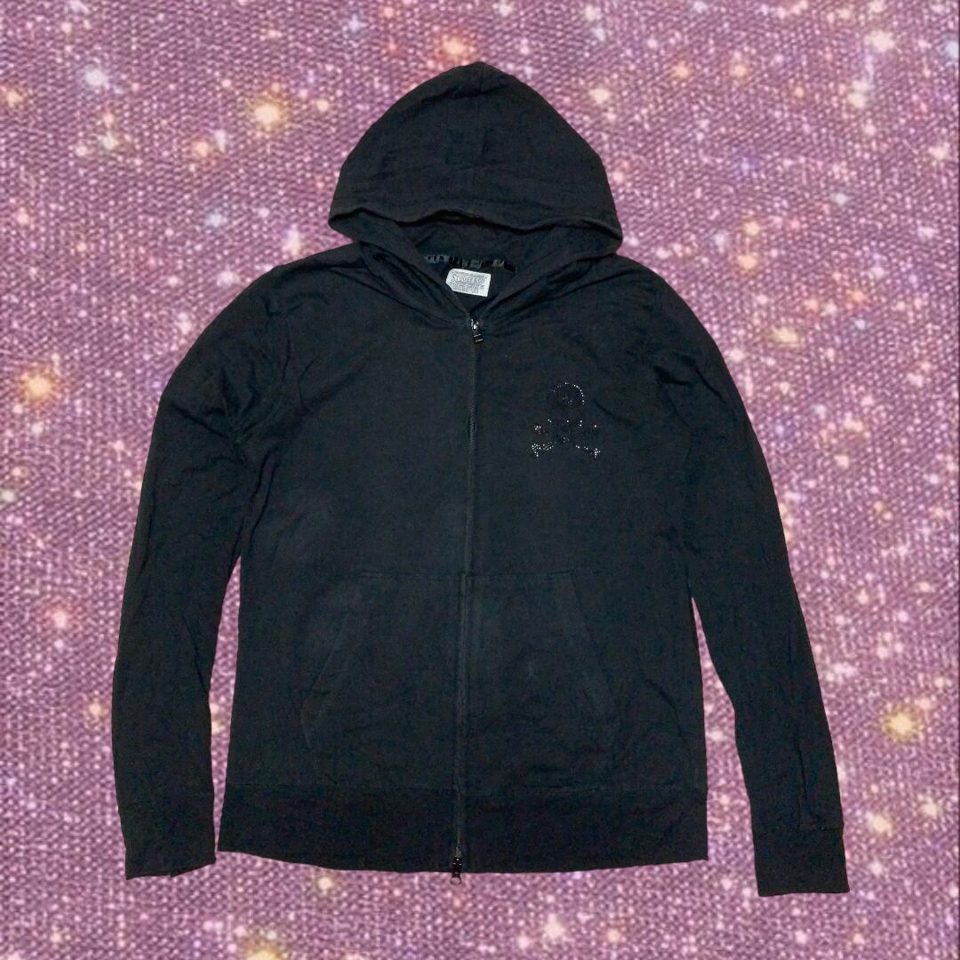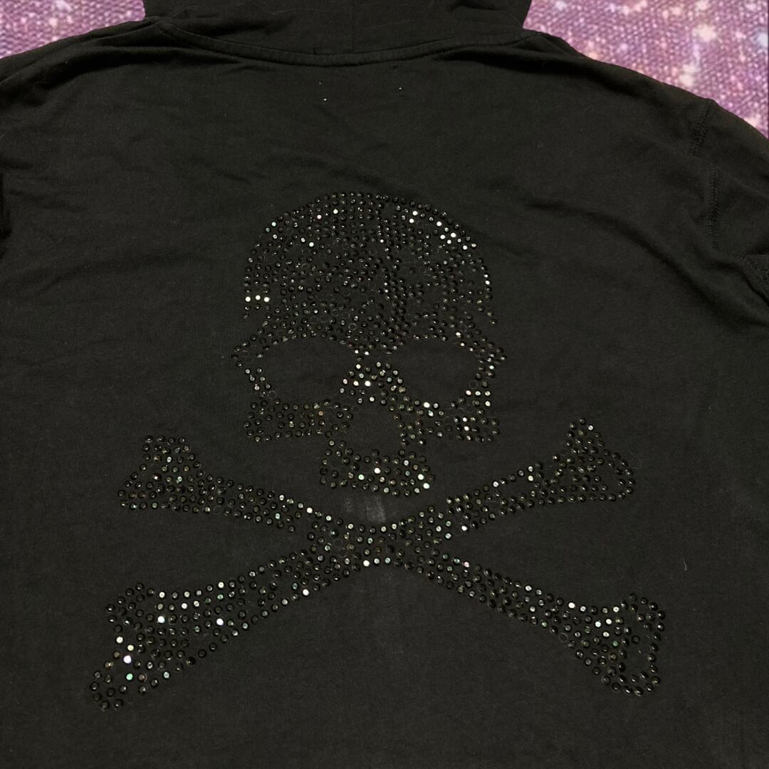 パンクロック フェアリーグランジ ネオグランジ ブラックラインストーンドクロ 薄手 ダブルファスナー ジップアップパーカー