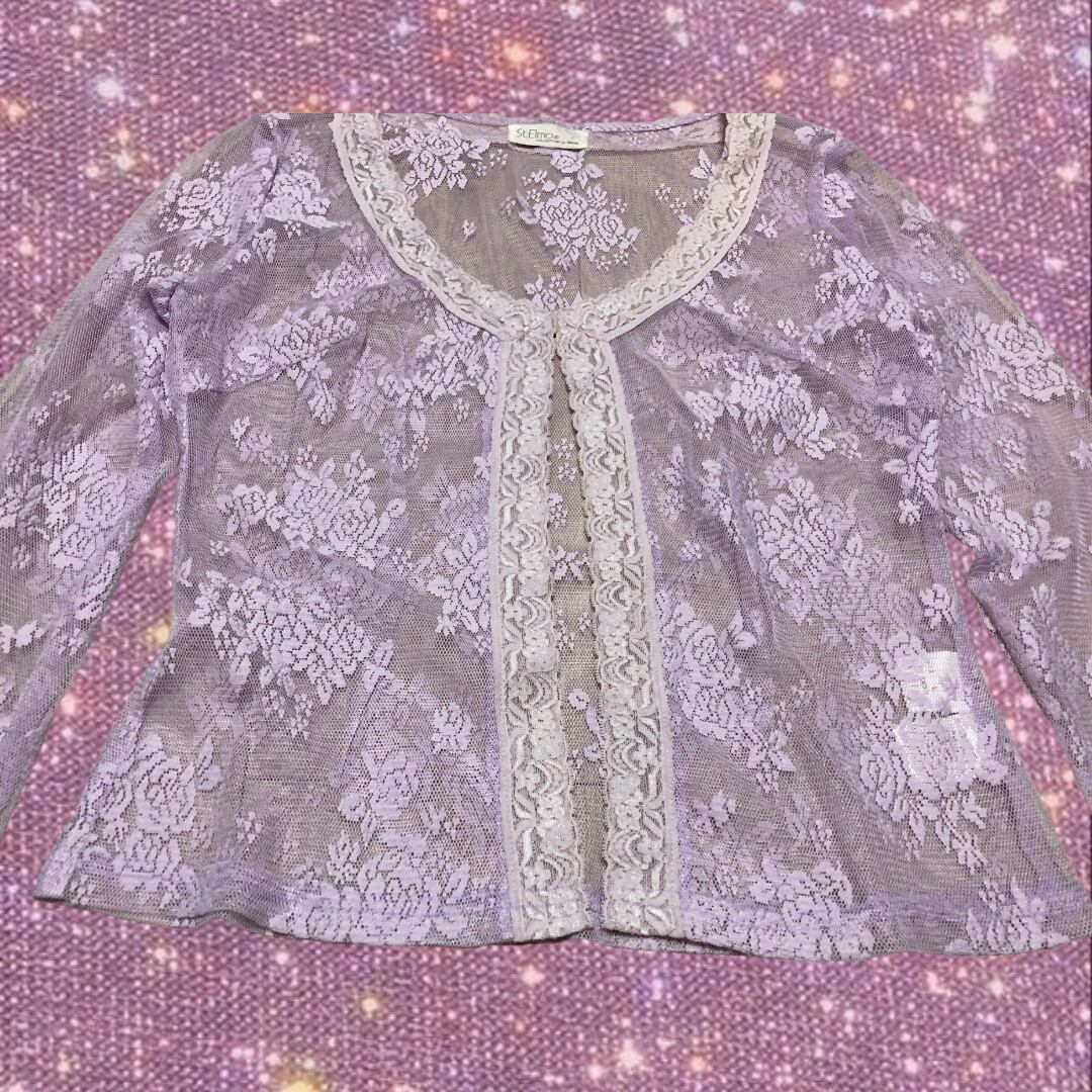 Romantic Boho/Fairy Grunge/ vibes ”St.Elmo” Retro Lavender See-through Lace Cardigan