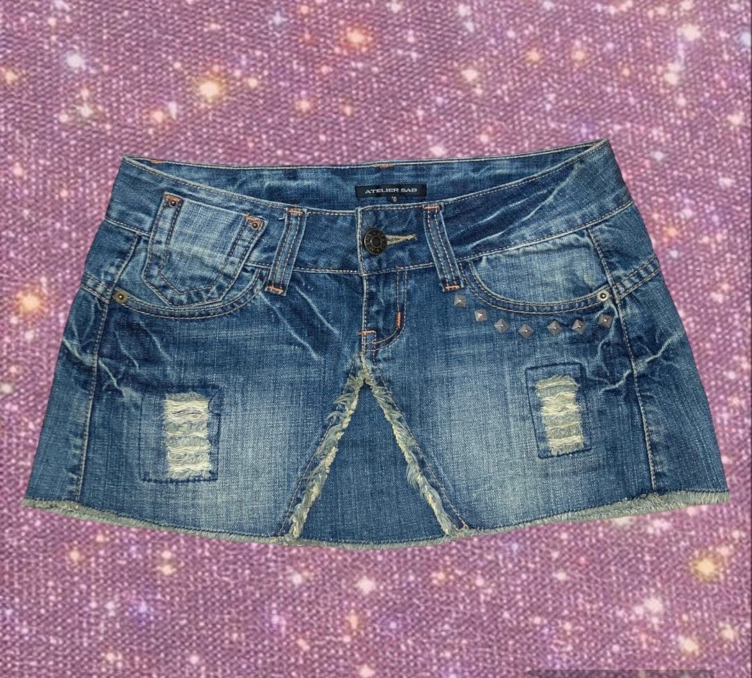 Y2K ROCK GYARU vibes "ATELIER SAB" Low-rise Distressed Denim Micro mini skirt
