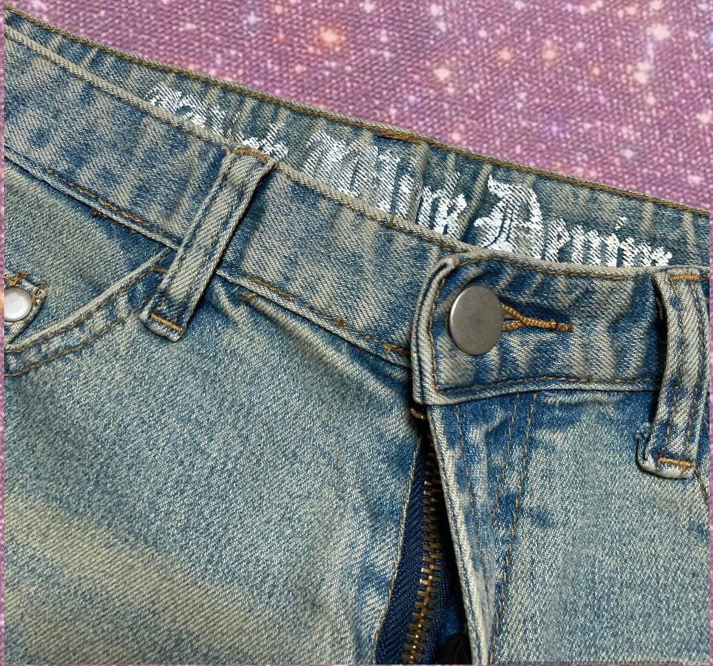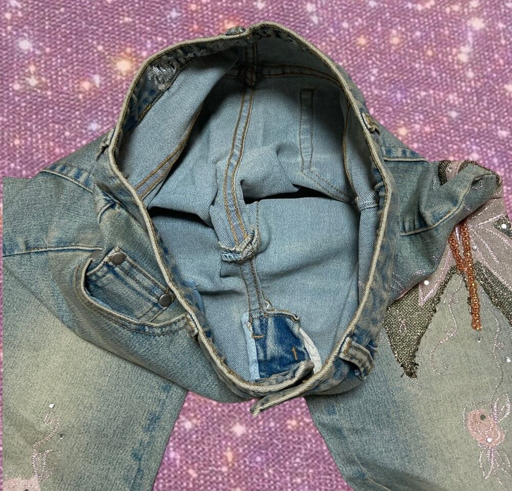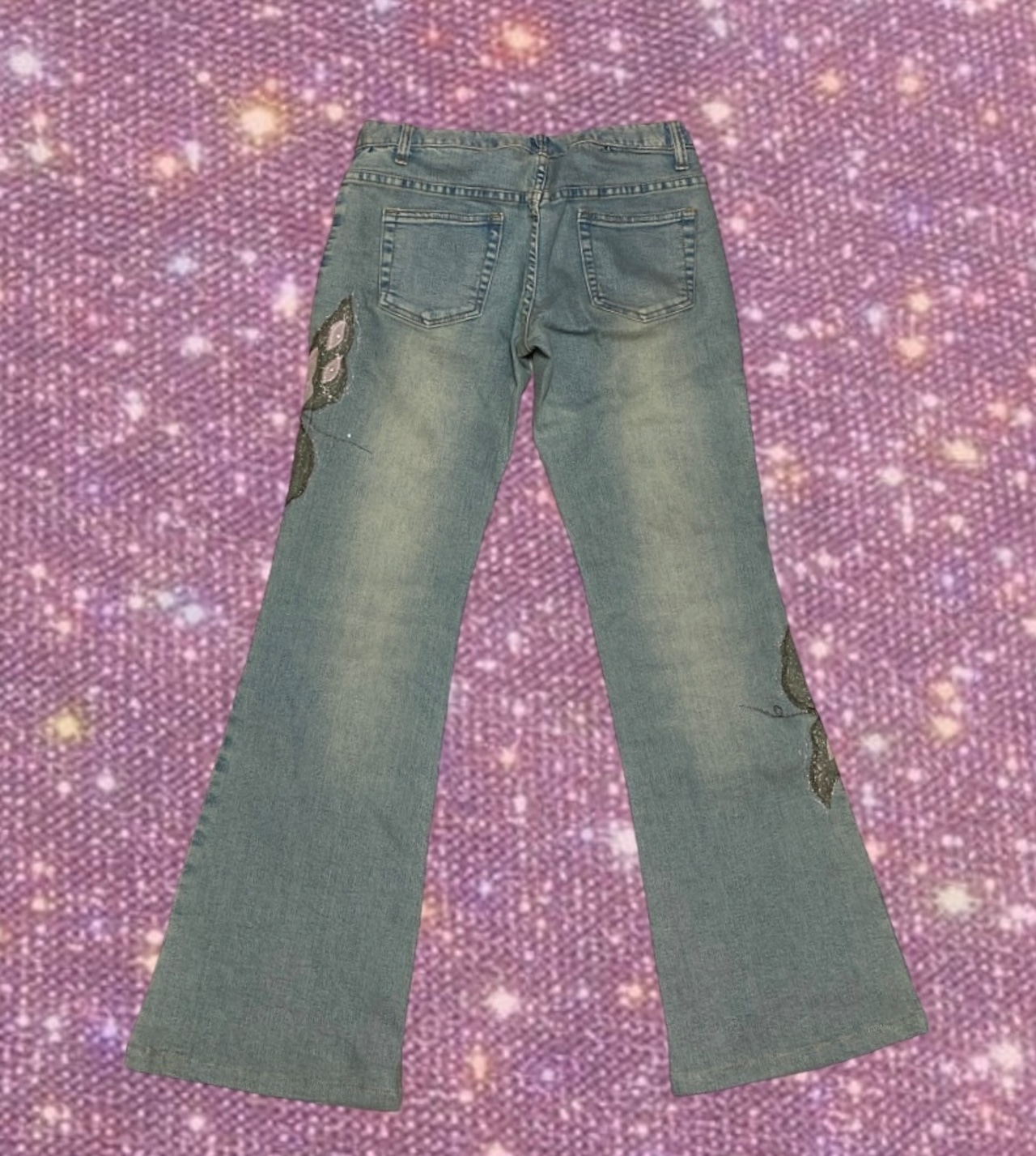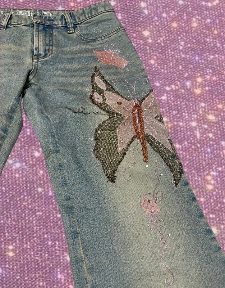 Y2K Romantic boho vibes "Wink Wink" smoky pink butterfly Low-rise Denim Pant